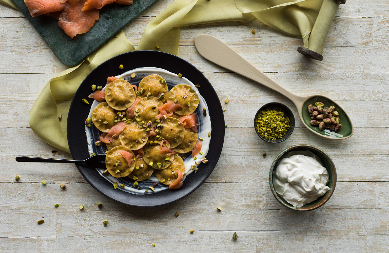 Ravioli Bio Petits Pois avec Yaourt Grec, Saumon et ...