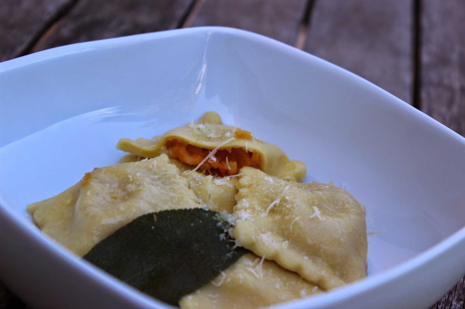Ravioli fatti in Casa con Zucca e Prosciutto conditi con ...