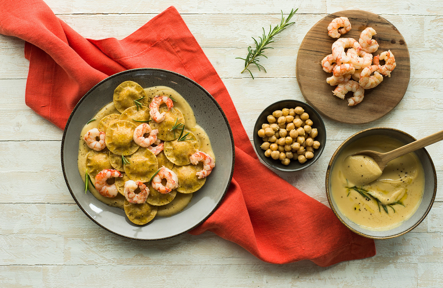 Ravioli Bio Ceci e Broccoli con crema di Ceci e Gamberi ...