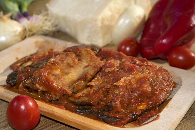 Veal Schnitzel Parmigiana. by Ben Ross. This aubergine parmigiana recipe is a brilliant vegetarian alternative to a lasagne. Aubergine parmigiana is one of the most iconic Italian dishes.