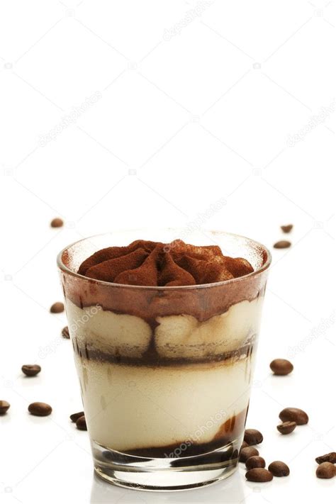 Tiramisu dans un verre avec des grains de café ...