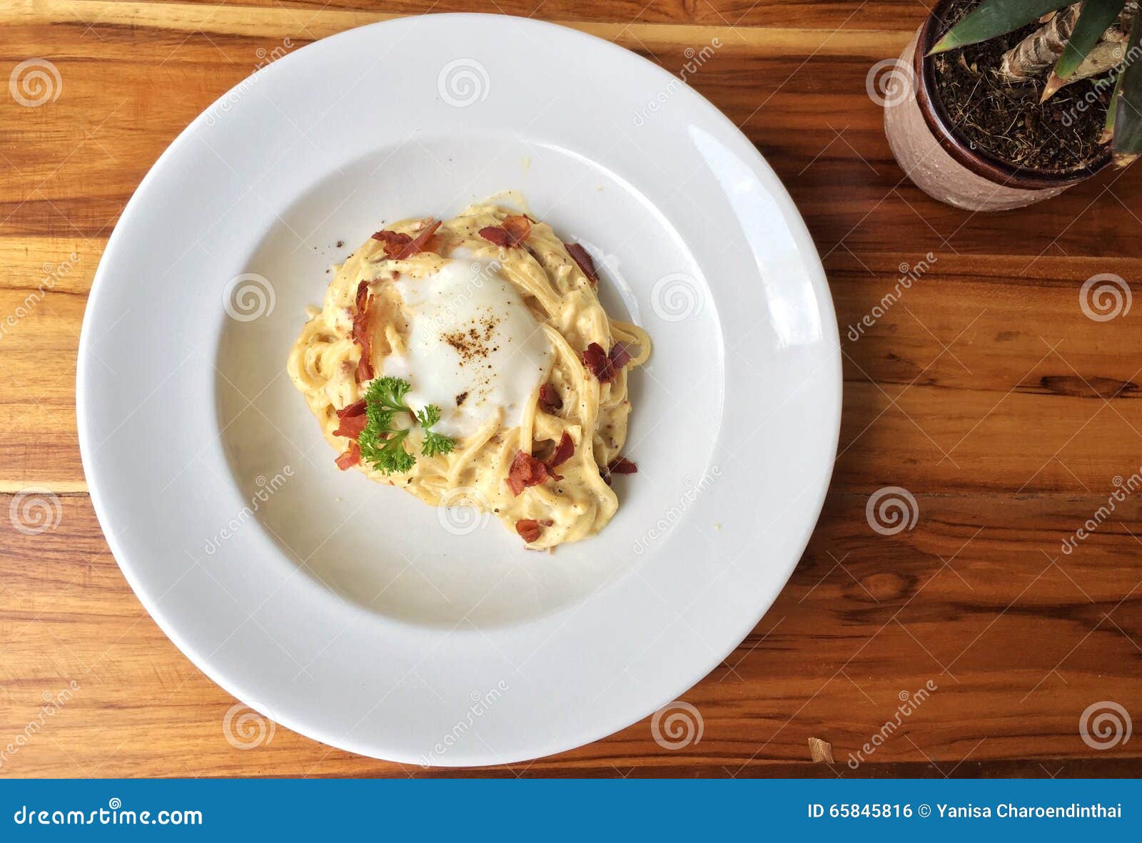 Spaghetti Carbonara On White Plate Stock Photo - Image of ...